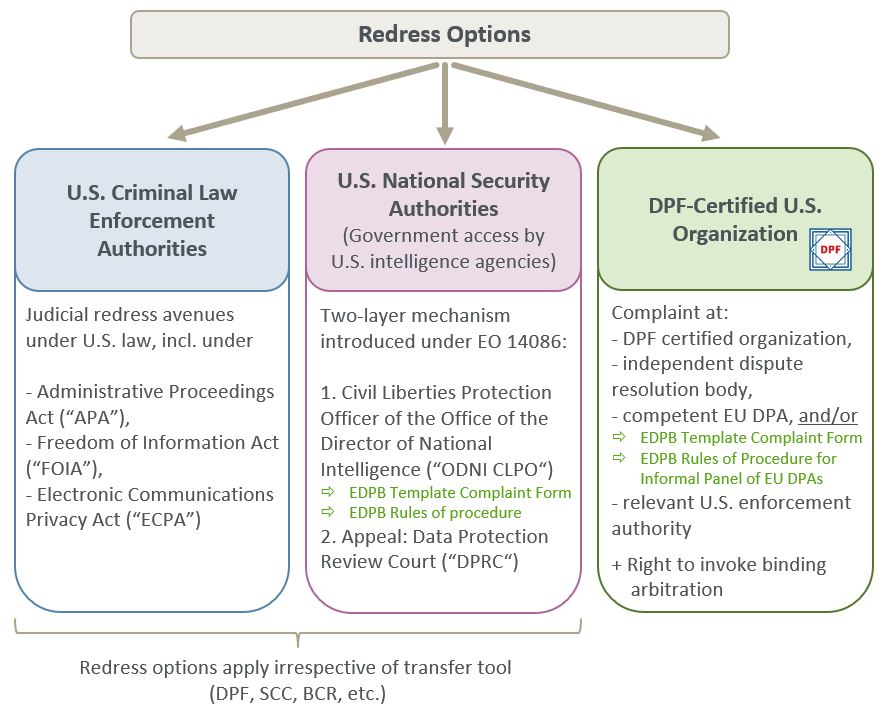 EU individuals have two key redress options in case of EU-U.S. data transfers: