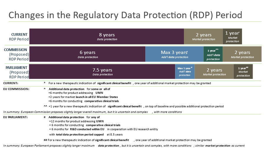 The European Parliament supports the European Commission’s proposal to reduce regulatory data protection, but to a much lesser degree than the European Commission proposed. In this article, we analyze these proposals and the impact amendments to the regulatory data protection periods could have, even on existing pipeline products.