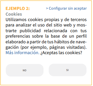 Este es un ejemplo oficial de banner de cookies de la AEPD: